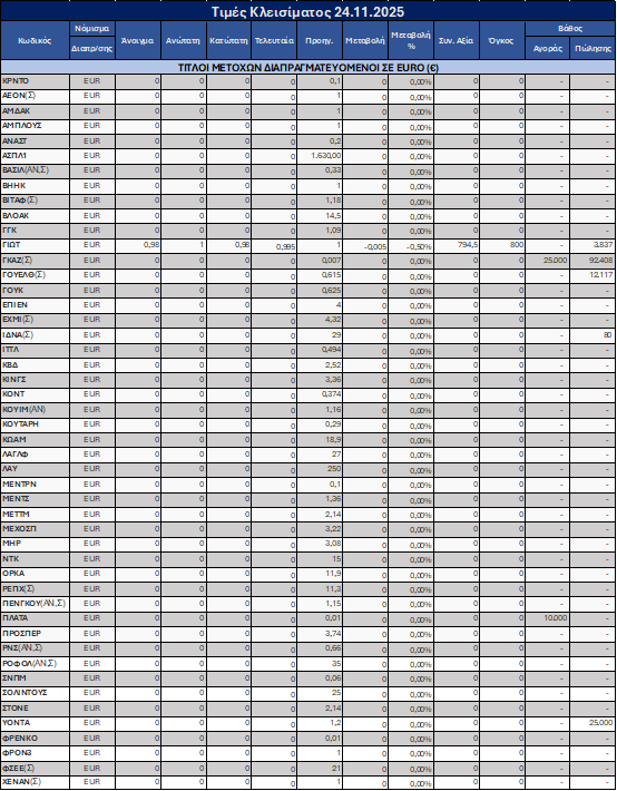 Συνολικά, η αγορά κινήθηκε σε ήπιους ρυθμούς, με περιορισμένη συναλλακτική δραστηριότητα αλλά σαφή παρουσία εντολών αγοράς και πώλησης.