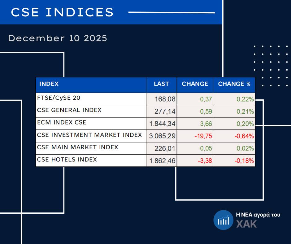 Με χαμηλή αλλά στοχευμένη συναλλακτική δραστηριότητα ολοκληρώθηκε η συνεδρίαση στη Νεοαναπτυσσόμενη Αγορά του Χρηματιστηρίου Αξιών Κύπρου στις 10.12.2025, με το ενδιαφέρον να επικεντρώνεται κυρίως στη GLOBALWEALTH GROUP PLC, ενώ οι εντολές παρέμειναν ενεργές σε επιλεγμένους τίτλους.